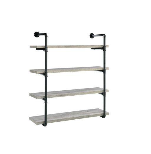 Industrial design can be elegant, as shown by this wall shelf. Plumbing pipe frame highlights the rugged utility that's the hallmark of the style. Wall hanging adds a unique element to the piece. Incorporates four (4) open shelves for ease of storage or display. Available in a variety of finishes and widths for your specific style and space needs.