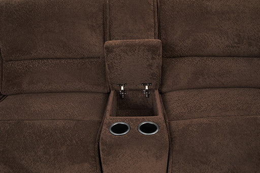 Transitional Dark Brown Fabric, Metal, Foam Glider Recliner Webbing Back Frame Construction Rounded Wide Track Pillow Top Arms Console w/ Power Ou...