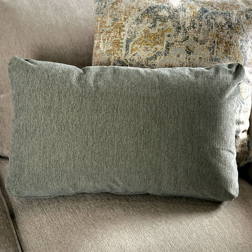 FOA EastWhite flecking enhances the otherwise light gray fabric of this modern made-in-the-U.S.A. sofa that comes complete with cushions and pillows!