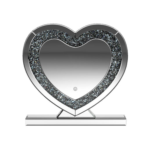 Coaster Z2 PremiumThis heart-shaped table mirror blends glam style with practical lighting, perfect for vanities or dressing areas. The mirrored frame features an in...
