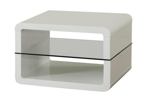 Coaster Z2 PremiumThis ultra-modern square end table features a sleek white high-gloss finish and a clear tempered glass shelf for functional storage or display. Cra...