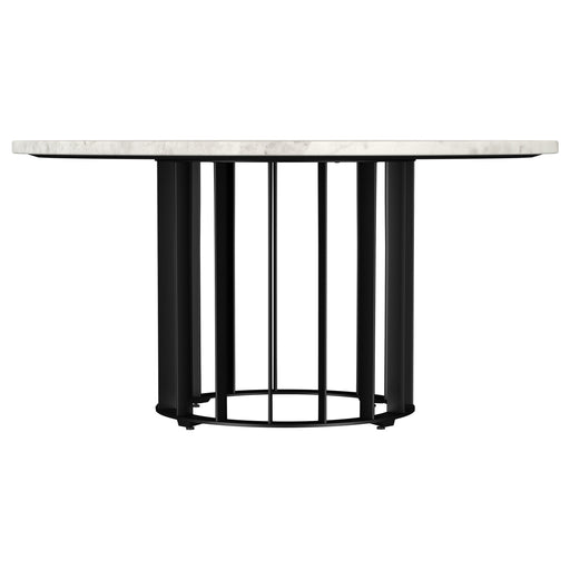 Coaster Z2 PremiumStrikingly modern with a classic twist, this dining table features a spacious faux marble top and an asymmetrical gunmetal metal base. The clean wh...