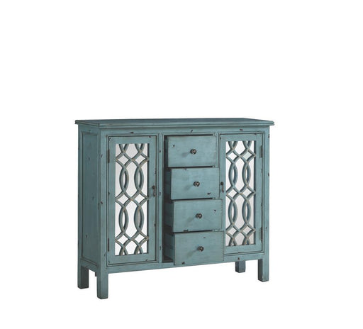 Coaster Z2 PremiumThis well-crafted wooden cabinet adds a splash of color and classic charm to any space. Finished in a distressed blue, it features four center draw...