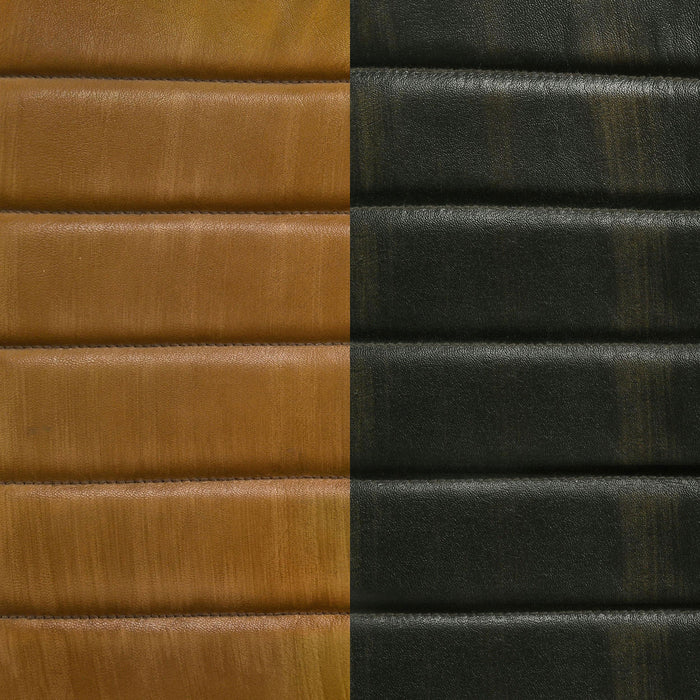 With a hint of ranch inspiration, the design of this five-piece counter height dining set is a brilliant choice for an easy, casual living space. Indulge in a calm vibe with a set anchored by a natural finish sheesham table featuring a spacious rectangular top and tapered, rounded legs. A dark apron with geometric design detail adds an exotic effect. Mid-Century Modern influence adds to four comfortable counter stools with scoop seats and a thick back, both with horizontally channeled leather upholstery. Metal framing features iconic retro slender rounded, splayed legs.
