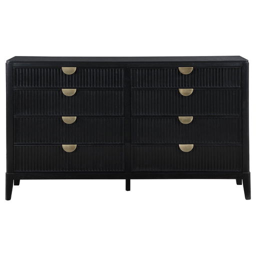 Graceful lines are enhanced with the wire brushed finish and wood grain details of a modern dresser. Eight drawers create ample storage and organiz...
