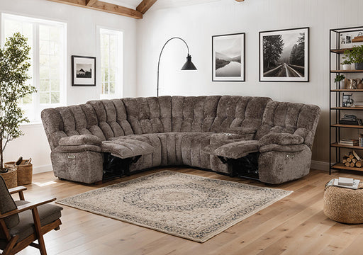 FOA EastPollux Brown Sectional, 123"L X 110 1/2"W X 41"H, 374lbs. Stretch out your legs and lean back into a comfortable position without having to fight o...