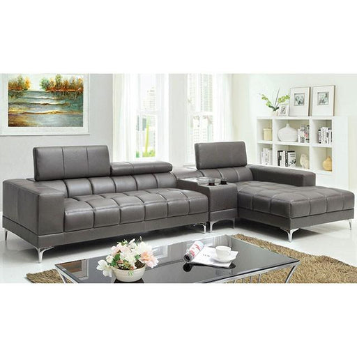 FOA EastThis optional center console with bluetooth speakers can allow you to play all of your favorite music wirelessly in your living room. Gray bonded l...