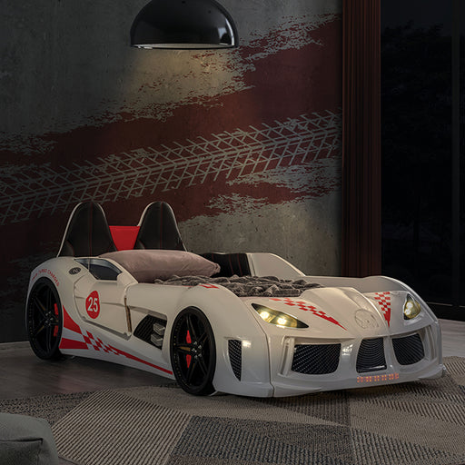 Trackster Bed White, Red,, Black, & Blue