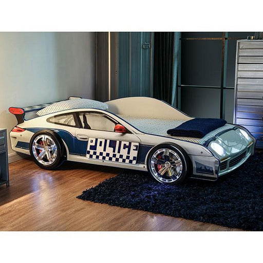 Hero on patrol! Your child will race off into dreamland adventures with this turbo squad car bed design. It's flashy and sturdy, complete with meta...