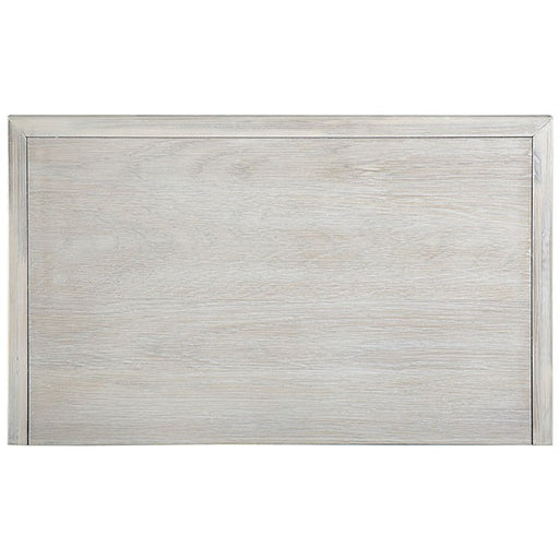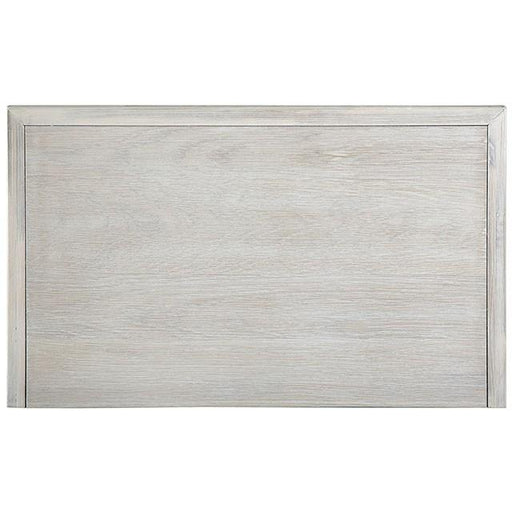 One could be reminded of winter with this gorgeous antique white bed. The sturdy wood construction features a curved plank style headboard and two storage drawers built into the footboard. It's a grand addition to any bedroom - one that makes a statement.