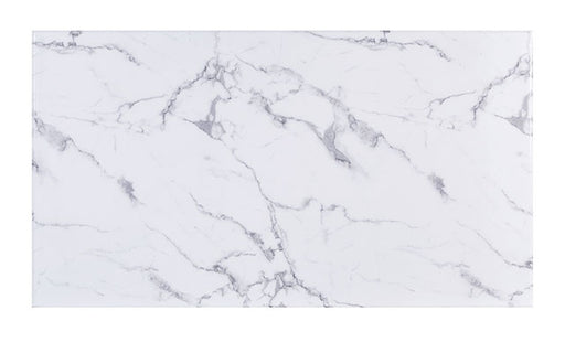 It's a dining ensemble designed for the upscale palate. The table top is made of durable faux marble that's as stunning as the original yet easier to maintain. Its edges are beveled to match the underlying frame made of stainless steel, finished in chrome. Similarly finished, the pedestal is designed in a V-shaped structure with bevels and edges reflecting light in a manner that's uniquely modern. Matched with beautiful wingback chairs, this piece sits perfectly in any luxurious space.